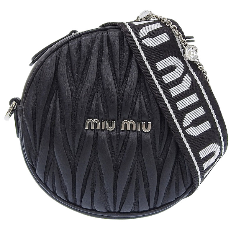 > ミュウミュウ MIUMIU マテラッセ 2WAYバッグ ショルダー ポシェット ポーチ ナッパ レザー クリスタル ブラック 5BH191 中古 新入荷 OB2301