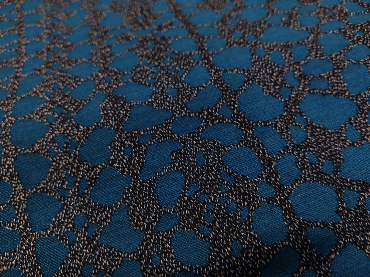 - ● 102 レア コードレース柄 着物 立体感 ディープブルー 黒 (黒 白 ドット柄) レース模様 厚手 コスプレ リメイクにも! レトロ 美品 ③