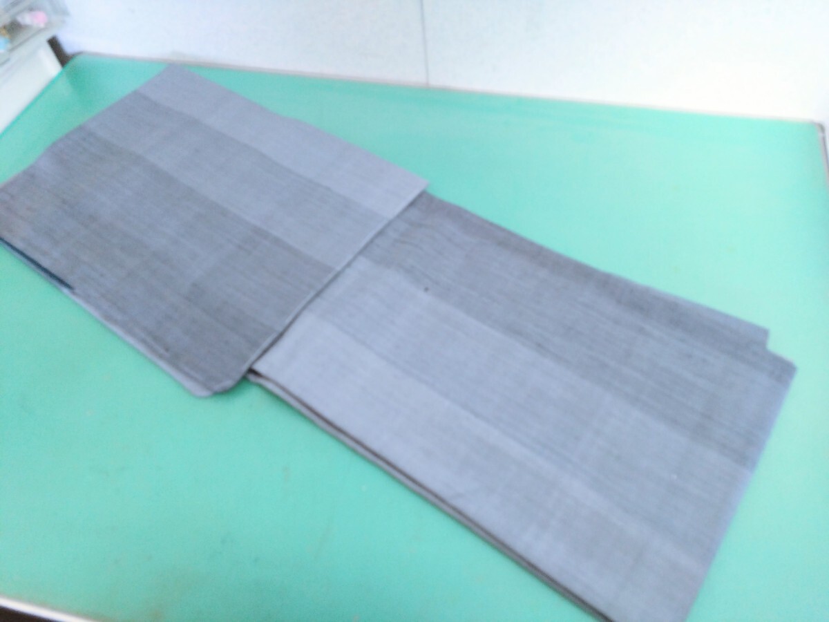 > ● 103 未使用品 しつけ糸付 高級 紬 着物 縦縞 暈し お淑やか 美しい グレー系 グラデーション ③