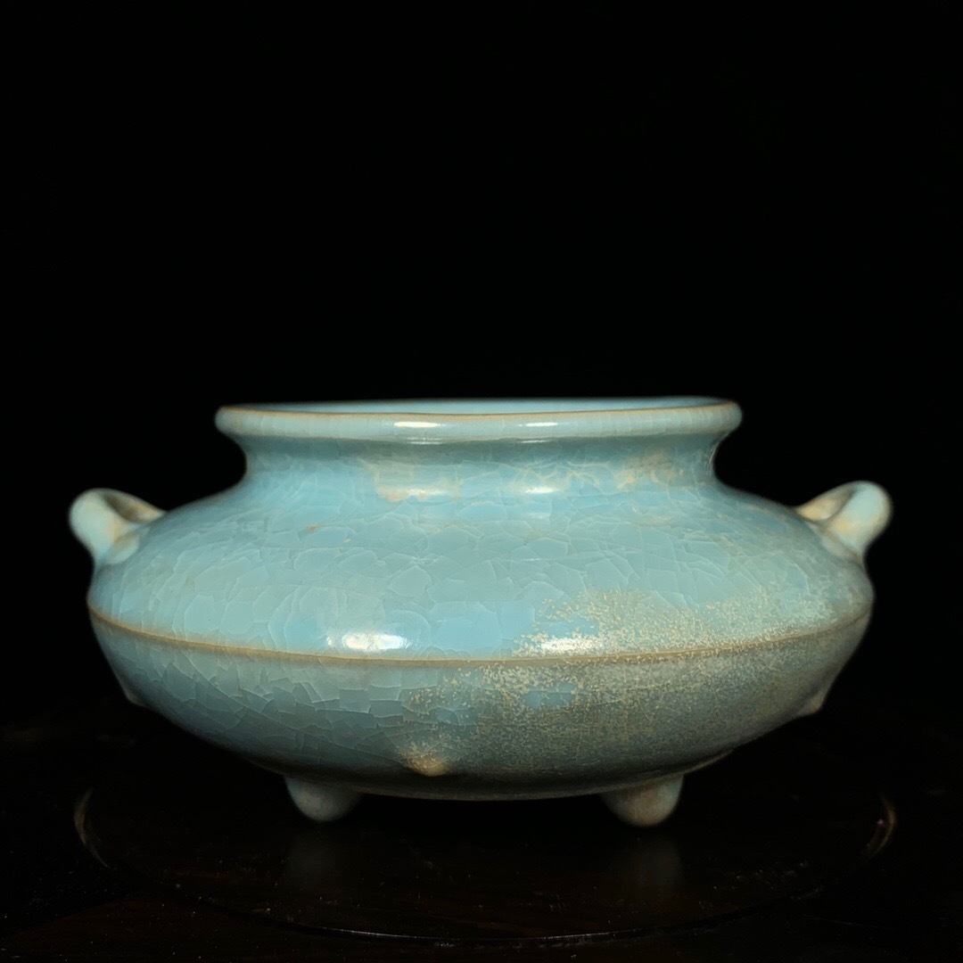 - 【超珍館蔵】宋 古陶瓷品 汝窯 冰裂紋 三足雙耳熏香炉 置物 古賞物 古美術品 稀少珍蔵品