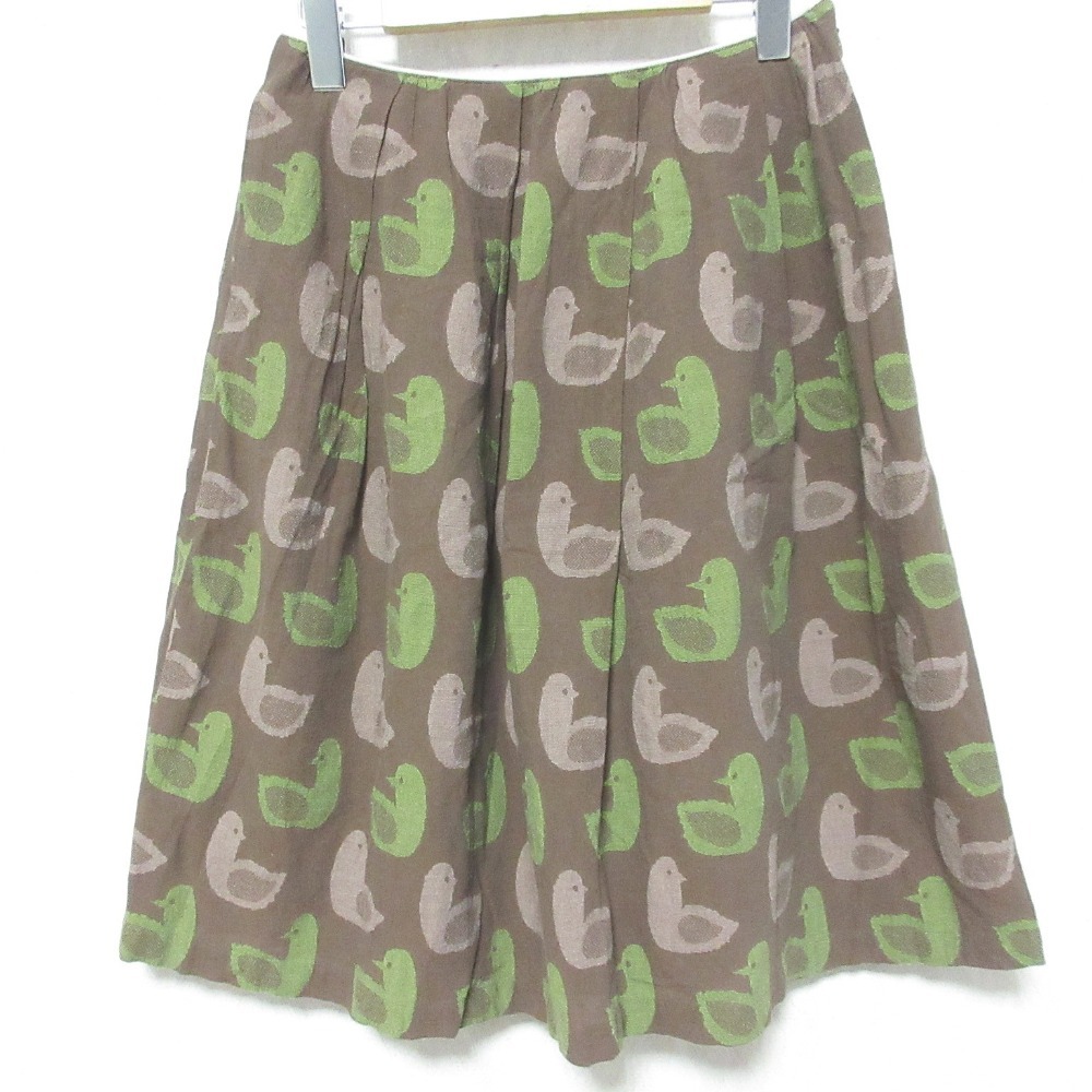 > 美品 Sally Scott サリースコット 鳥 バード アヒル柄 ひざ丈 フレアスカート 9号 ブラウン系