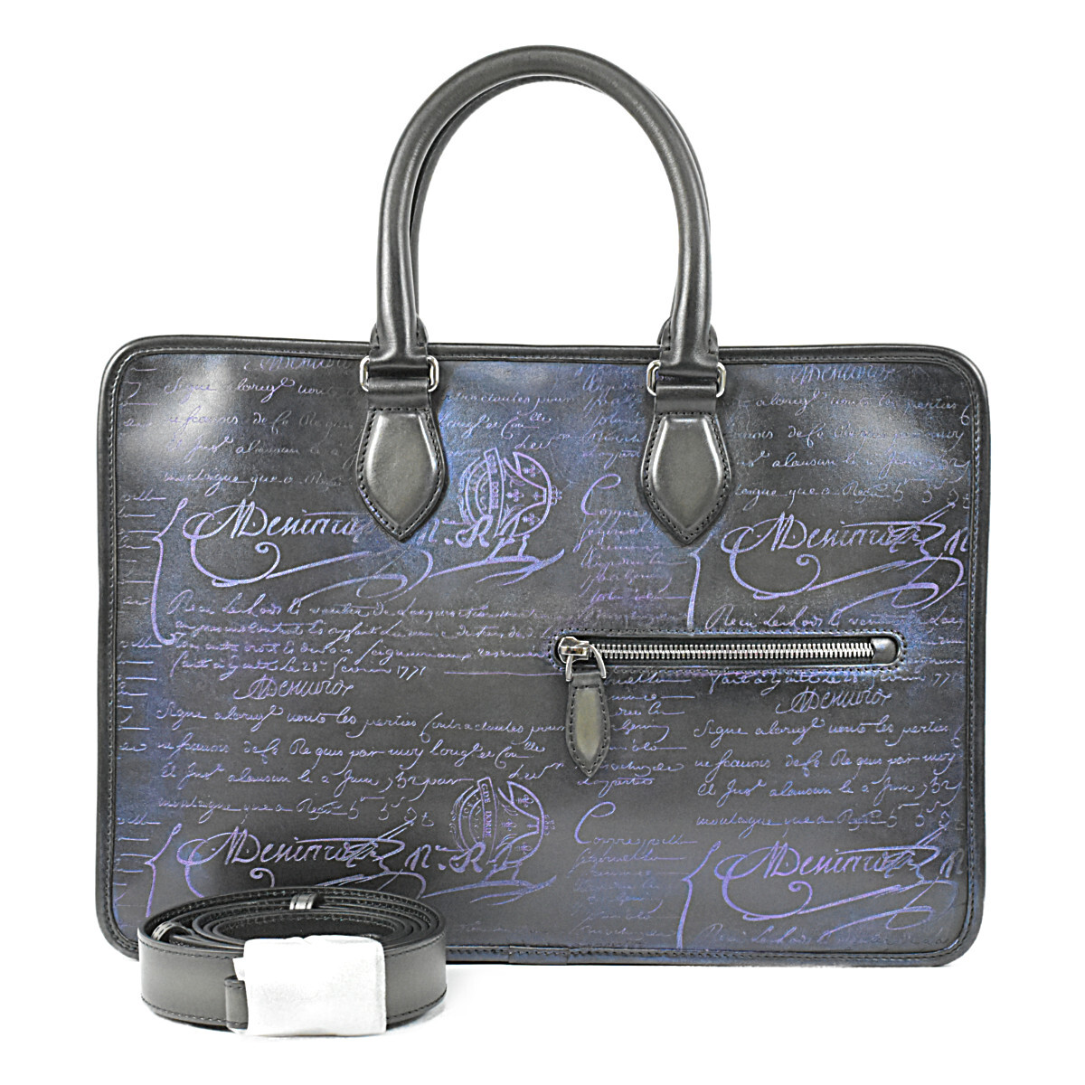 - ベルルッティ 超美品 限定 アメジストパティーヌ スクリット レザー ブリーフケース アンジュールミニ メンズ ビジネスバッグ BERLUTI