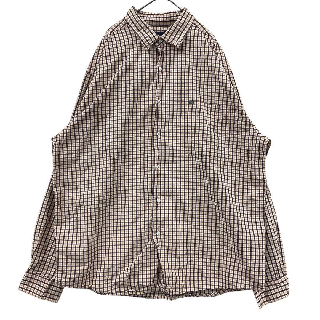 - ノーティカ メンズ長袖シャツ 茶×橙 チェック柄 XL 春夏 薄手【2754】