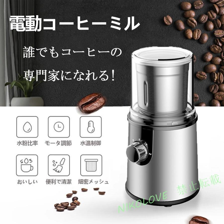 - 電動コーヒーミル ステンレス鋼製 容器が取り外しで水洗いやすい コーヒーミル お茶ミル 胡椒ミル コンパクト 均一な粉末 MK103