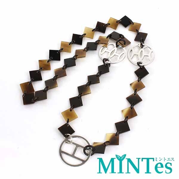 > Hermes エルメス ディーヴァ ネックレス ブラウン×シルバー金具 アクセサリー レディース 女性 ワンポイント インパクト プラスチック
