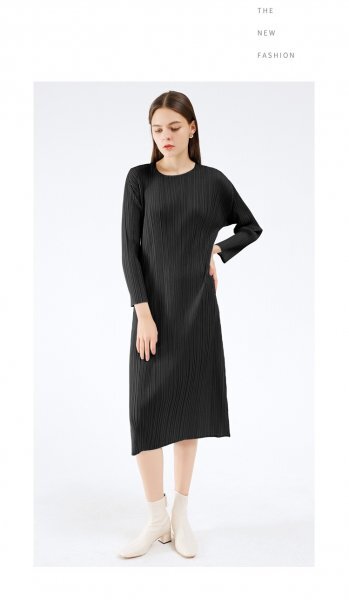 > 2503レディーストップスプリーツpleats長袖ワンピース弾力が肌触りドレープ性がいい大人可愛いブラック
