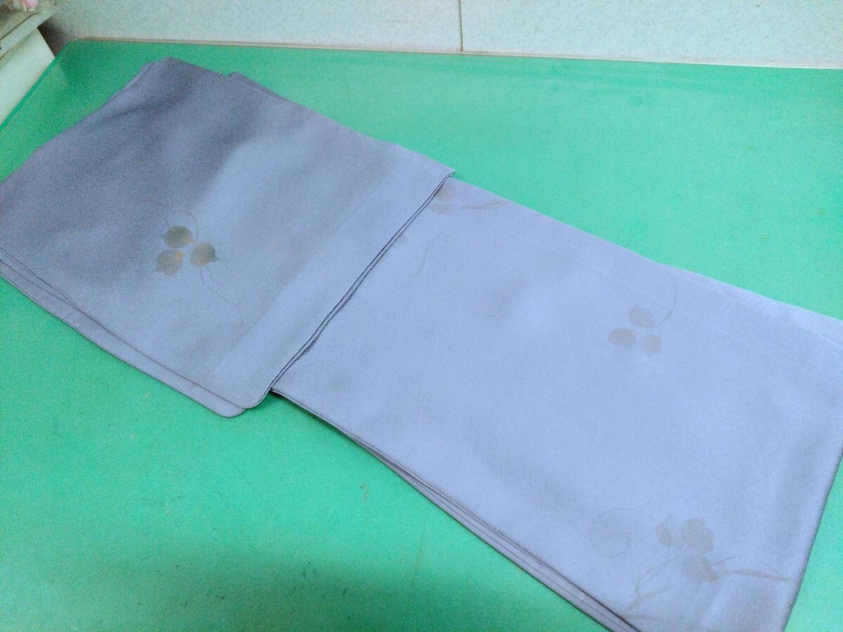 > ● 105 高級 手描き 絵 一重 和歌 詠 あり 作家物 着物 金彩 蔦 葉 蔓 模様 くすみカラー お淑やか くすみブルー系 紗綾形 付け下げ 中古③