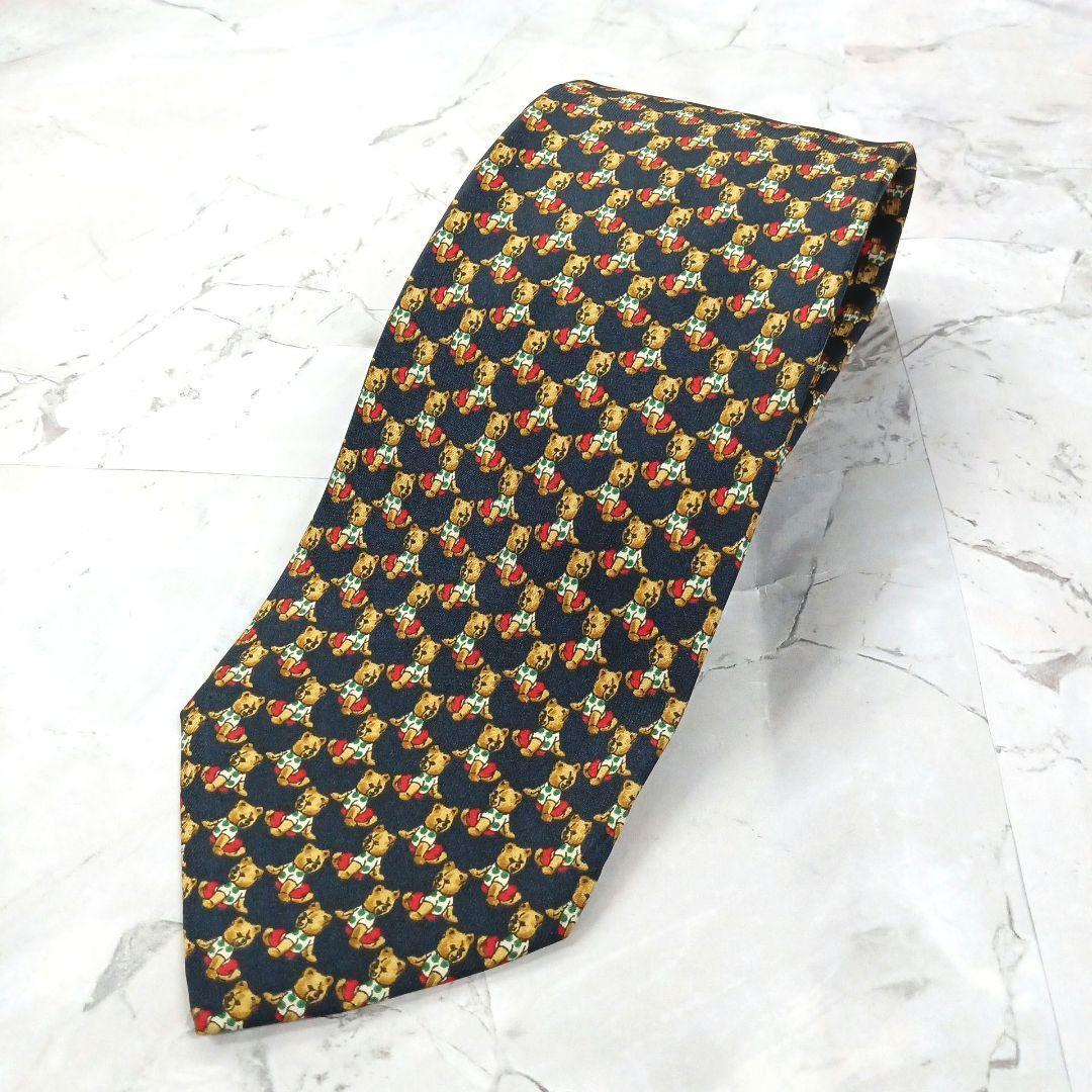 - ニナリッチ ネクタイ 紺 金色 総柄 絹【n701】