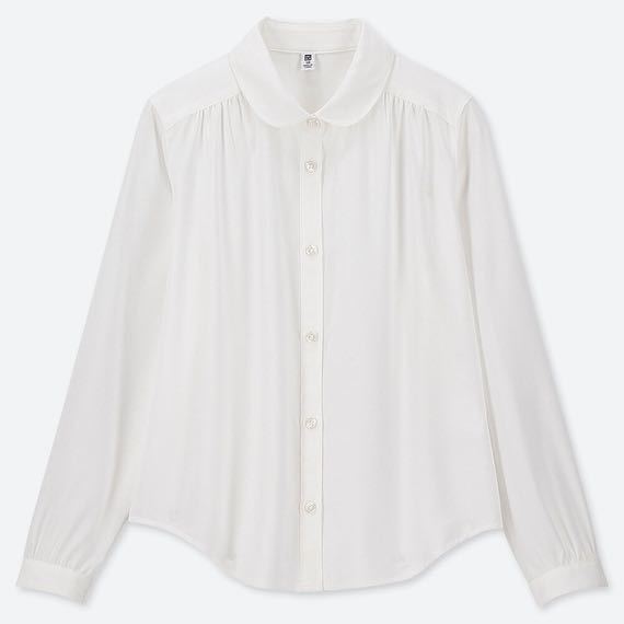 - ユニクロ GIRLS レーヨンエアリーブラウス(長袖) サイズ110 00ホワイト 入学式 お受験に