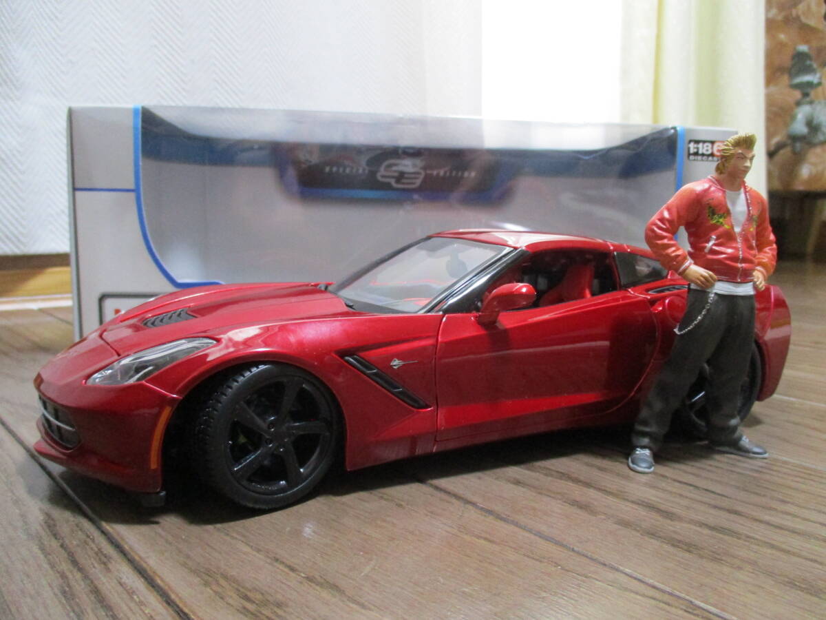 > CHEVROLET CORVETTE STINGRAY C7 1/18 ボルドー ミニカー コルベット 車高短カスタム 外装傷汚れあり 箱破損 台座 ゆうパック
