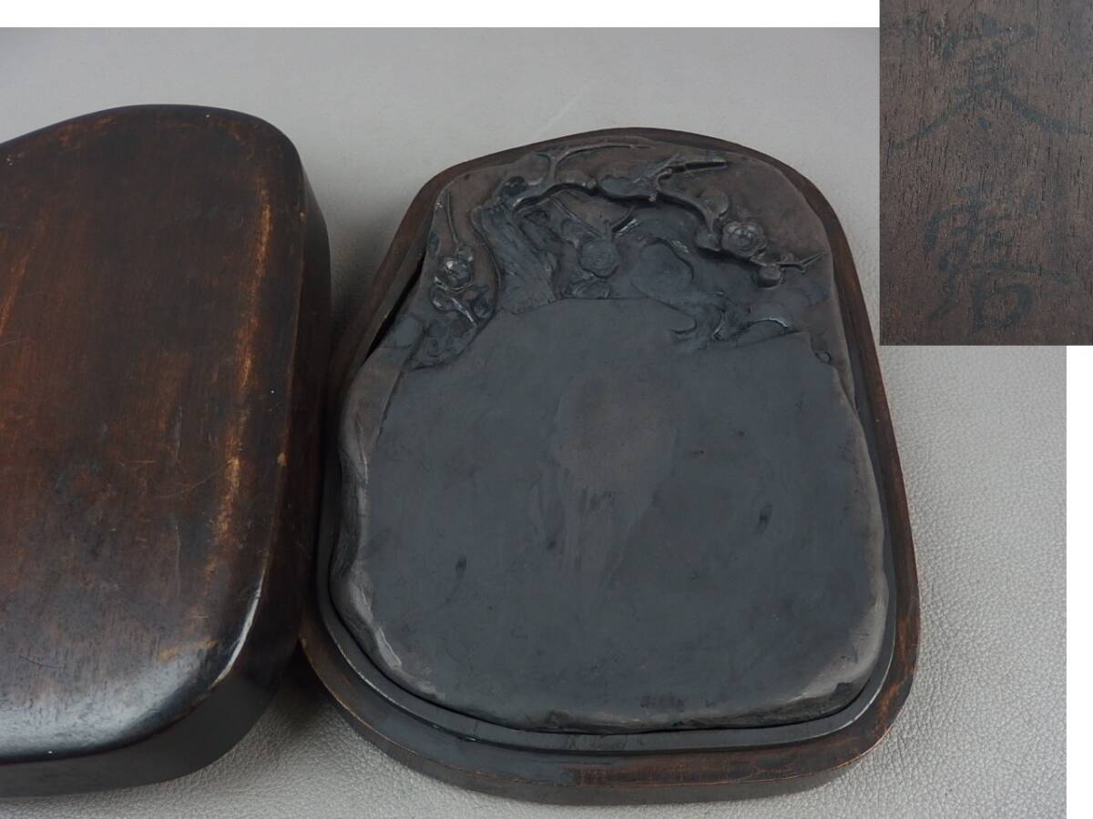 - 【骨董・書道具】★中国古玩★★花鳥文彫刻硯 文房具 fs098tb.7 端渓硯 茶道具