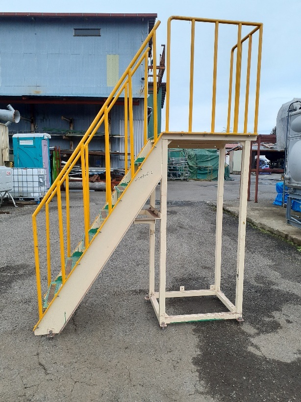 > c3A【棚神イ斉070306-2】階段 鉄骨6段 ステップ巾55全巾65cm ステージ高さ197cm 手摺付き ステージガード付き