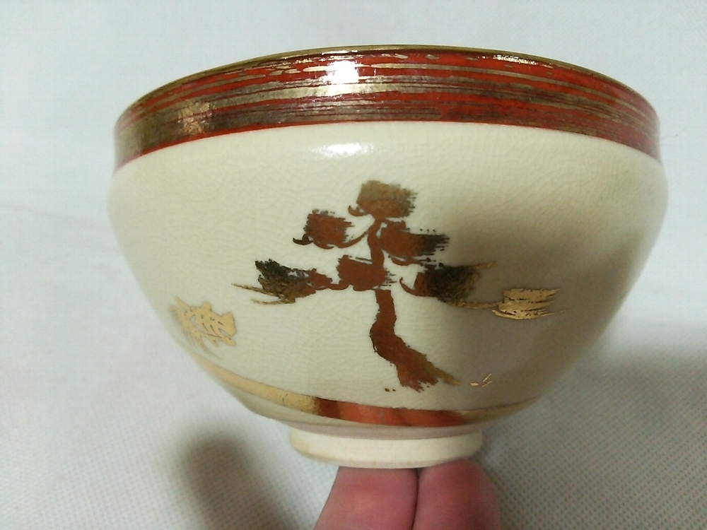 - ★【一美堂】★茶道具★八幡宗豊(即中斎宗匠の高弟)花押あり★貴山作★松金絵『抹茶碗』★