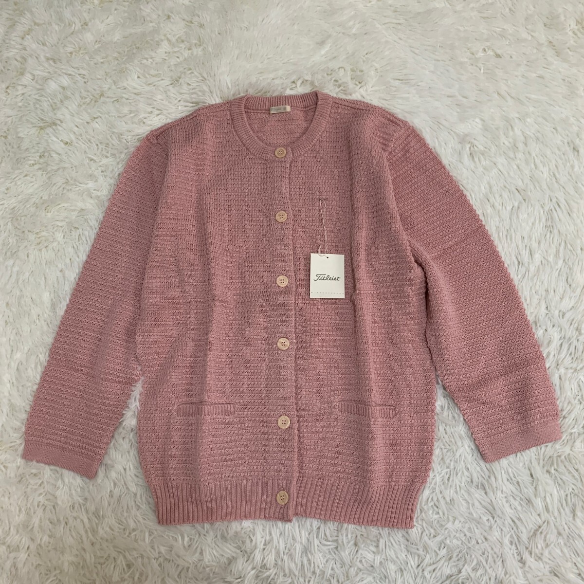 - Titleist タイトリスト ゴルフウェア カーディガン ニット クルーネック 長袖 ピンク サイズM タグ付き