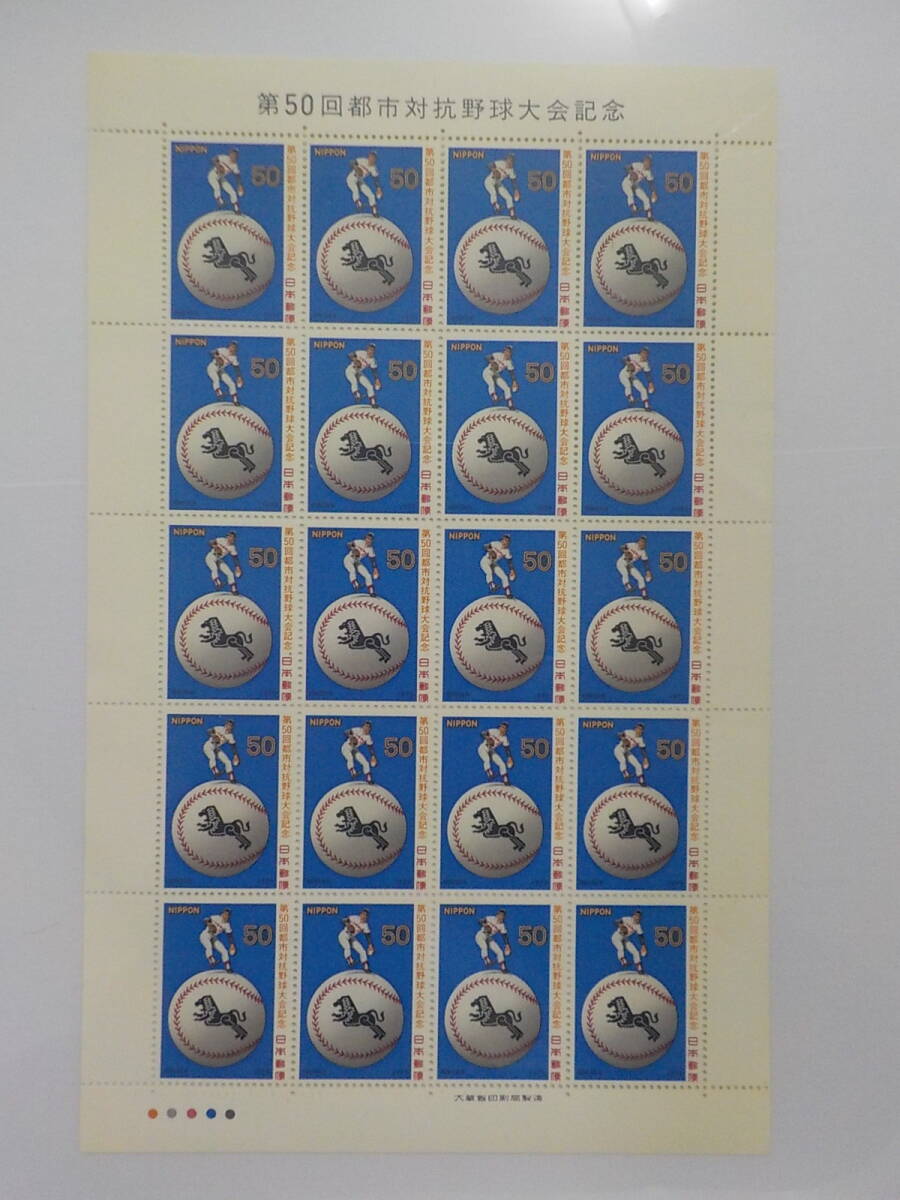 - 第50回 都市対抗野球大会記念 1979年 黒獅子を配したボールと選手 / 50円切手シート 未使用