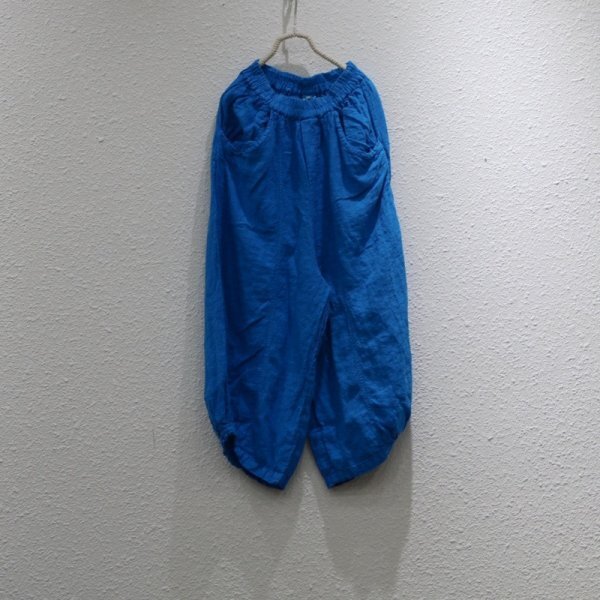 - jm ブルー ズボン パンツ アンティーク風 ロマンファッション ゆったり 楽ちん 麻100%