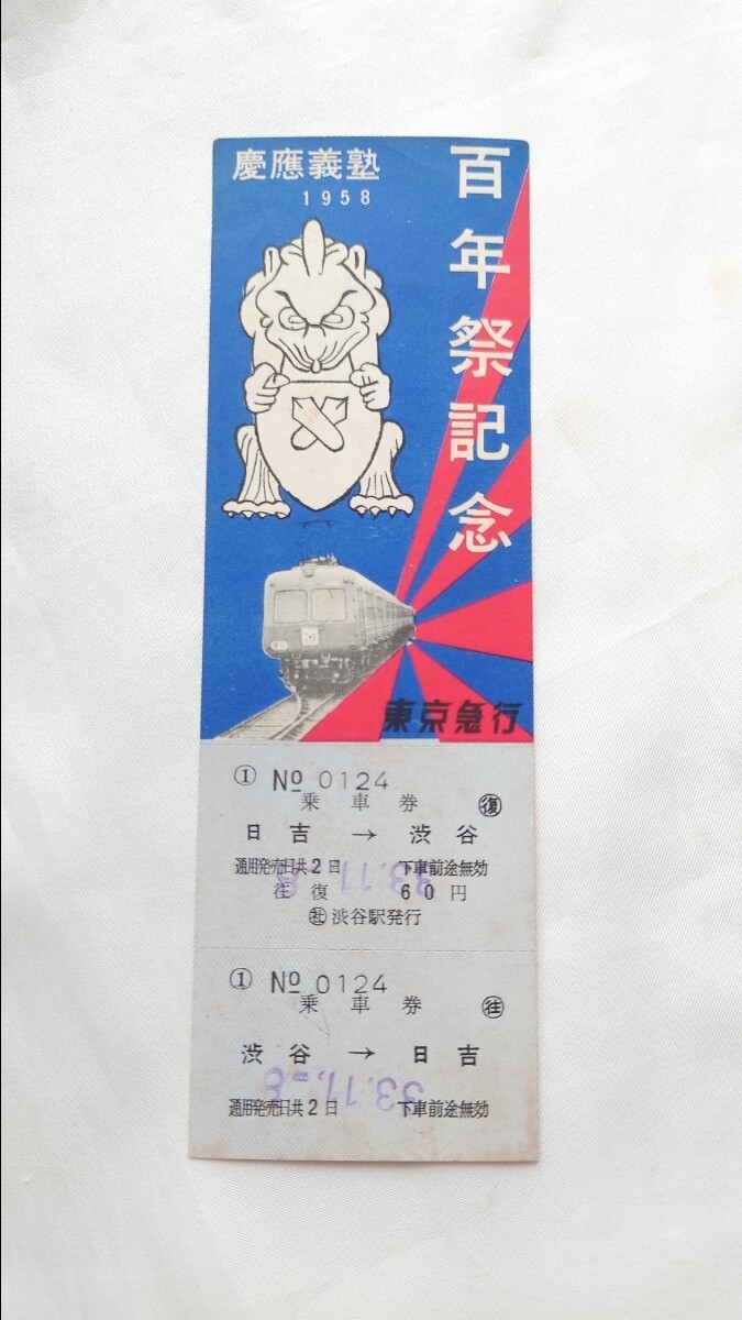 - ▼東京急行▼慶應義塾百年祭記念 往復乗車券▼昭和33年