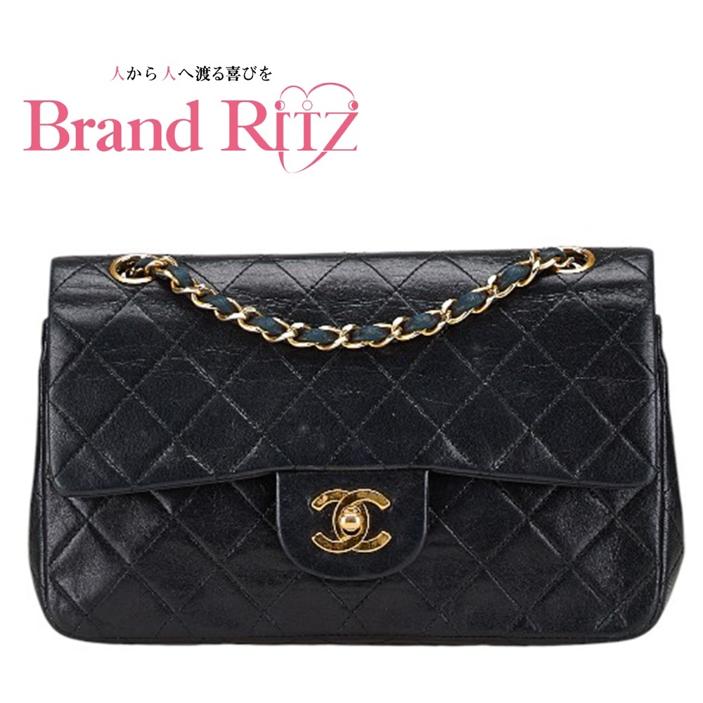 - 中古 ABランク シャネル マトラッセ23 ダブルフラップ ココマーク チェーン ショルダーバッグ ブラック ラムスキン 【送料無料】