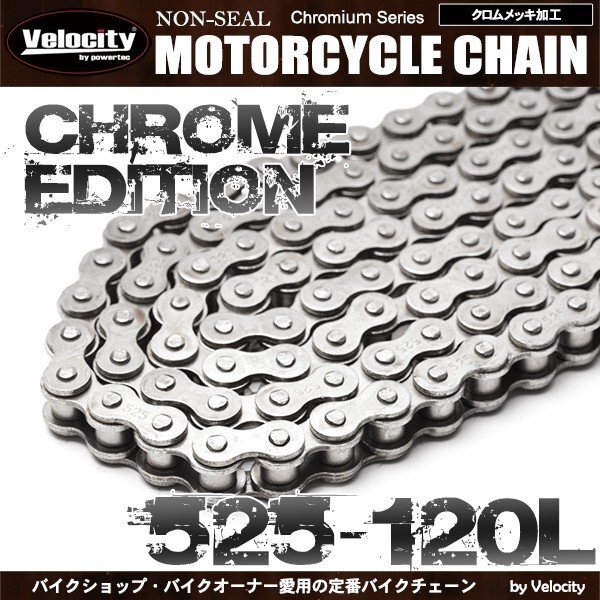 - バイクチェーン ドライブチェーン ノンシール 525-120L クロム