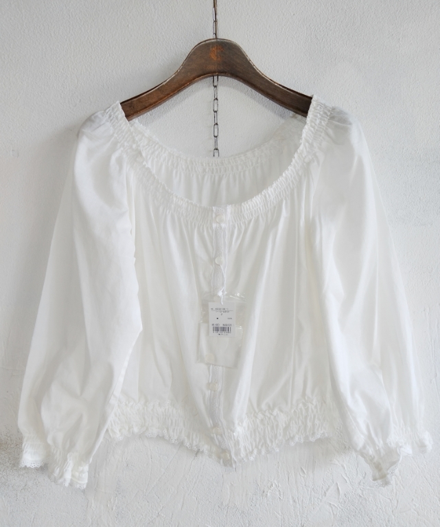 > 未使用(¥8,400)【L'EST ROSE レストローズ】[2] 日本製 スモックブラウス 清楚 可愛い デート 春夏 長袖 前開き 白 送350円
