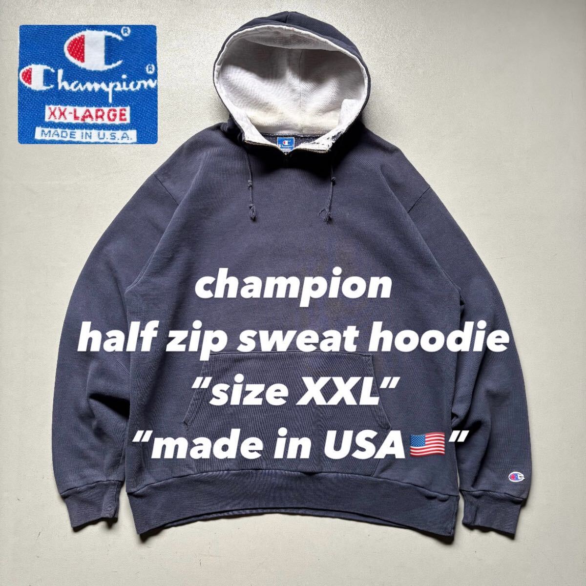 > champion half zip sweat hoodie “size XXL” “made in USA” チャンピオン ハーフジップ フーディ パーカー アメリカ製 USA製 ネイビー