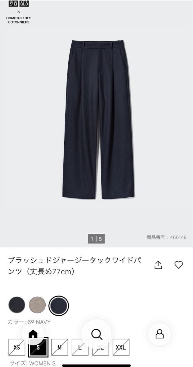 - UNIQLO コントワーデコトニエ ブラッシュドジャージワイドパンツ 丈長め サイズS ネイビー