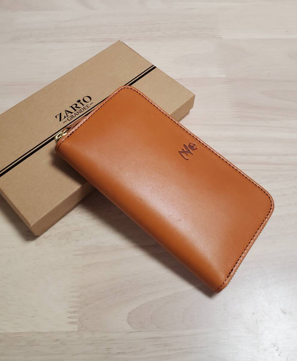 - 新品 未使用 美品 ZARIO-grandee- ラウンド長財布 ラウンドファスナー メンズ ロングウォレット 革 栃木レザー 日本製 キャメル×ブラック