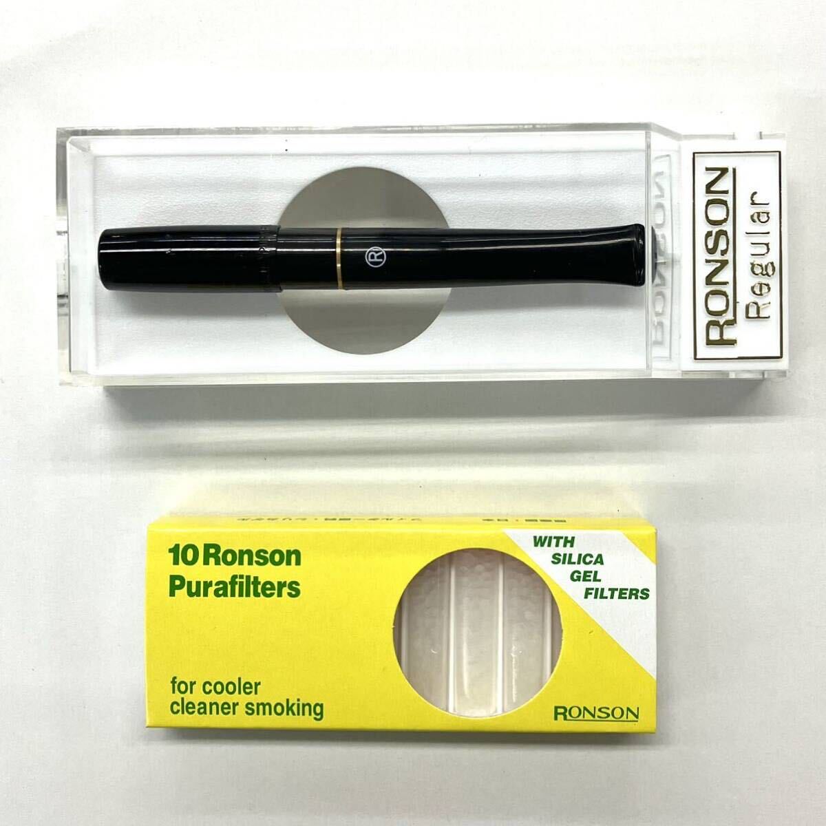 - 未使用品 RONSON HL-130 ロンソン シガレットホルダー レギュラー(97mm)喫煙グッズ ブラック 日本製 ケース入り スペア付き 長期展示品