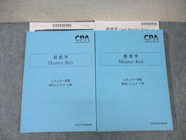 - CPA会計学院 公認会計士講座 経営学 Master Key 植田レジュメ 上巻/下巻 2022年合格目標 未使用品 計2冊 ☆ 036M4D