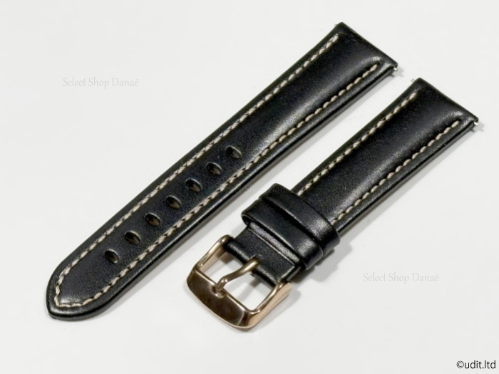 - ラグ幅20mm コードバン 本革 腕時計用レザーベルト ブラック ローズゴールド尾錠 時計用バンド 腕時計ベルト ワンタッチばね棒タイプ LB101