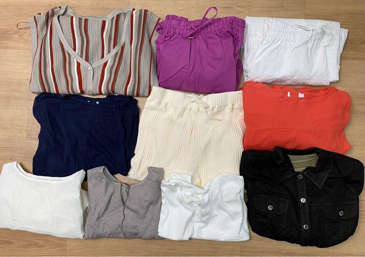 > 【T151】送無 未使用 レディースウェア 洋服 Mサイズ フリーサイズ Tシャツ ワンピース ジャケット ニット パンツ スカート 10点まとめて