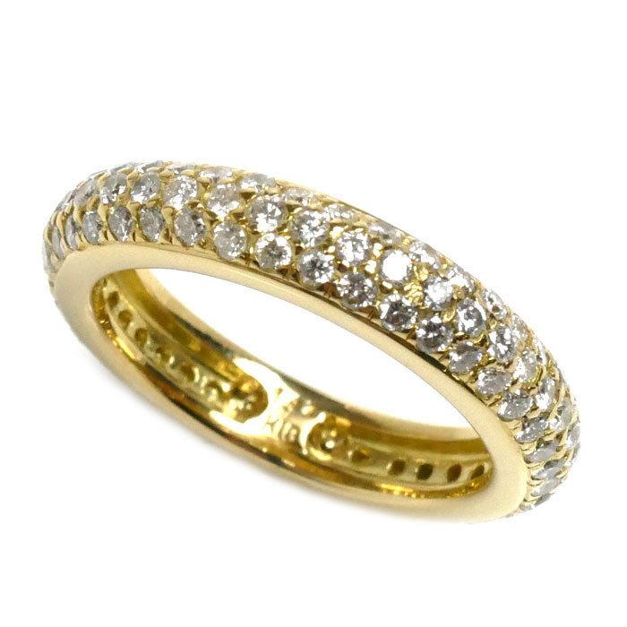 - K18YG イエローゴールド フルエタニティ リング・指輪 ダイヤモンド1.47ct 12号 6.1g レディース 中古 美品