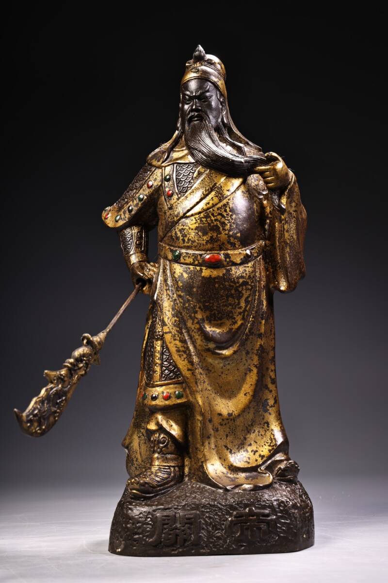 - 唐物 明 宣德年製 純銅 全銅 高浮彫 鏨刻工藝 泥金 觀音仏像一尊 銅製 中国美術品 時代物 D63