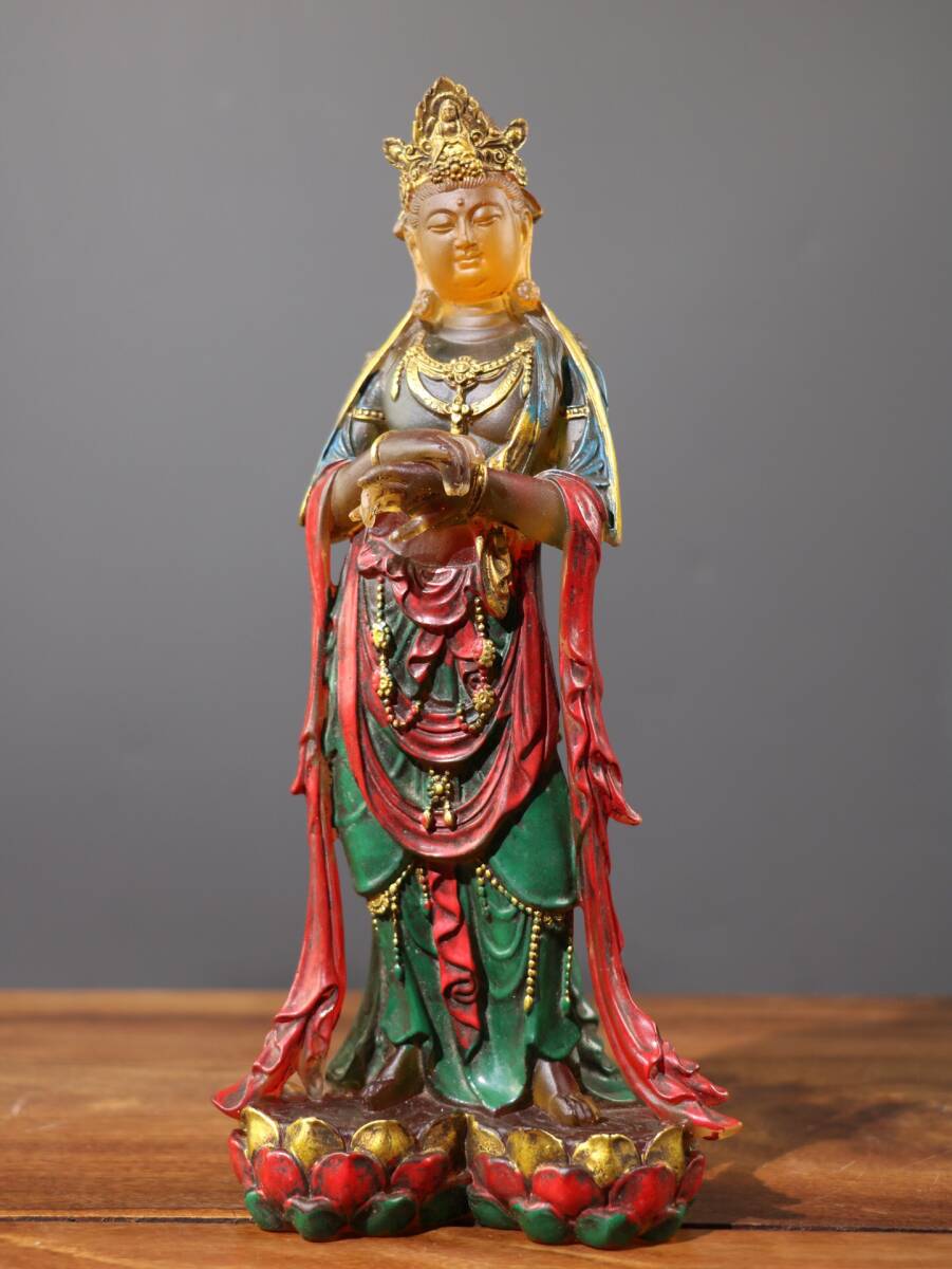 - ▽鴻▽ 琉璃製 細密彫 描金 彩繪 自在觀音像 置物 古賞物 中国古玩 中国古美術
