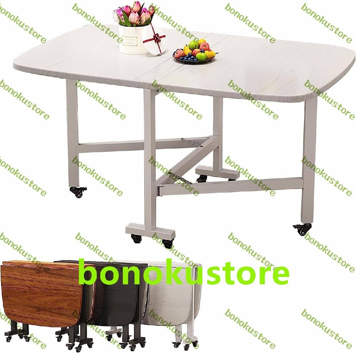- 6つの車輪と折りたたみ式デザインを備えた頑丈な木製伸長式ダイニングテーブル 多機能ドロップリーフ伸長式 120 * 80 * 75cm