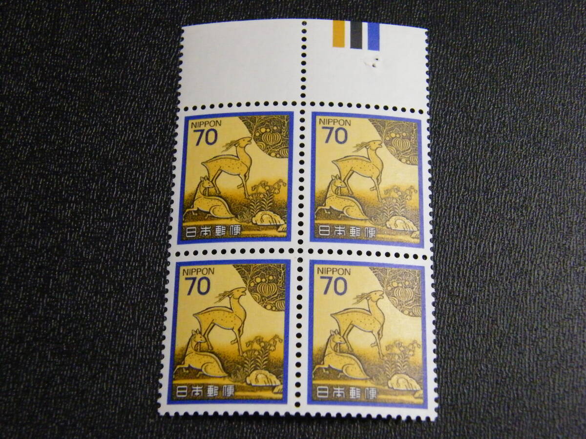 - シカ 70円 カラーマーク上 4枚ブロック 未使用 1980年シリーズ(CM付)