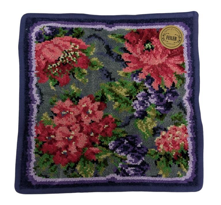 - 未使用 フェイラー ハンドタオル ハンカチ タオル 花柄 フラワー ネイビー パープル ピンク レディース FEILER 【中古】