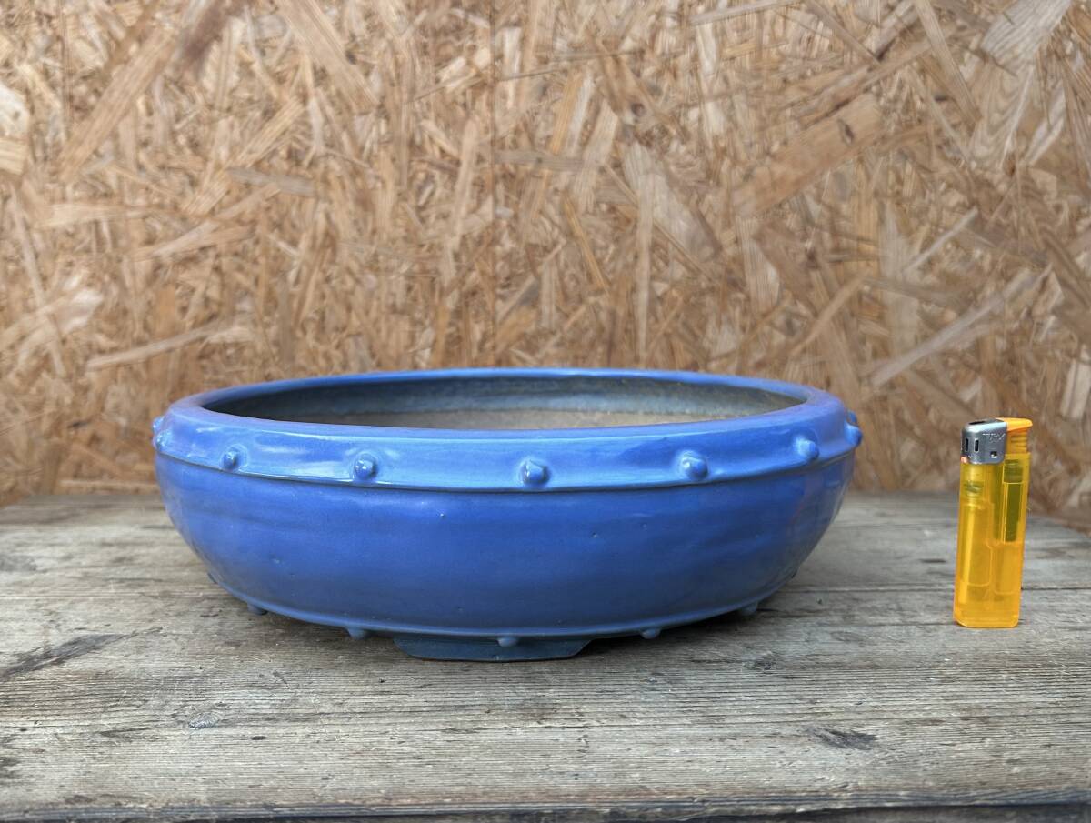 - 秀峰作青釉太鼓胴丸鉢 無傷