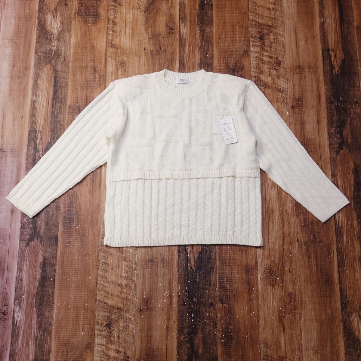 - 未使用 PELRIA 肩パッド付きニットセーター レディース M~L 古着 アイボリー OU9