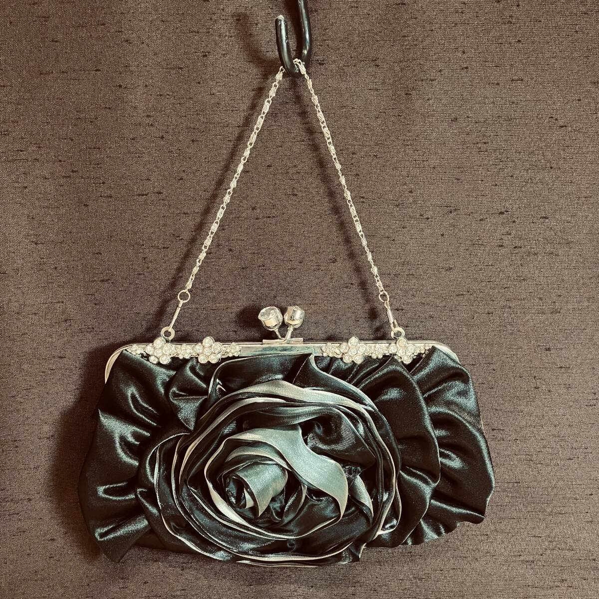 - がま口ハンドバッグ・パーティーバッグ(ブラックローズ)
