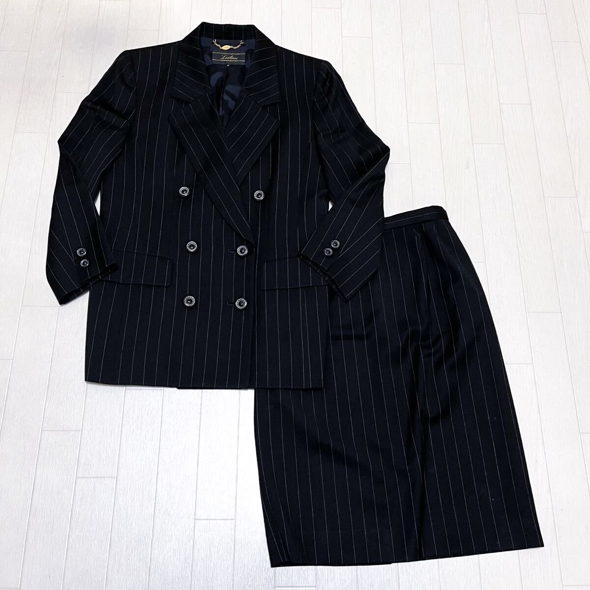 > K19① Leilian レリアン セットアップ テーラードジャケット スカート ダブルボタン ストライプ 9 ブラック レディース