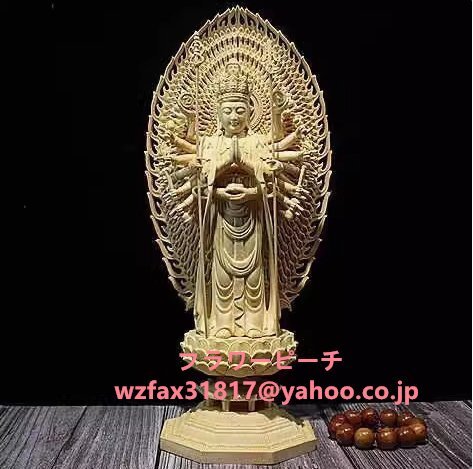 - 木彫 千手観音 千手観音菩薩 立像 坐像 十二支守り本尊 彫刻仏像 極上彫 仏教工芸品