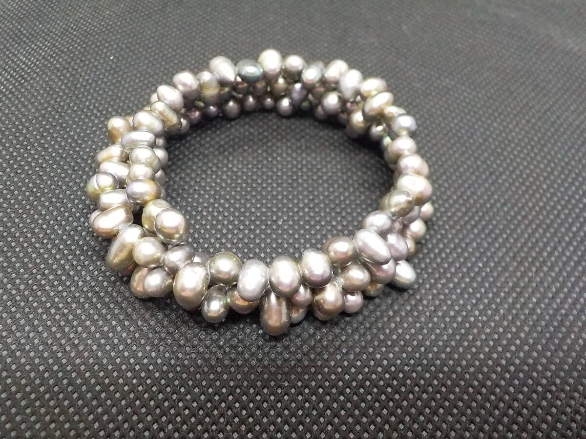 - ★淡水パール★ブラック★ブレスレット★巻きつけバングル★