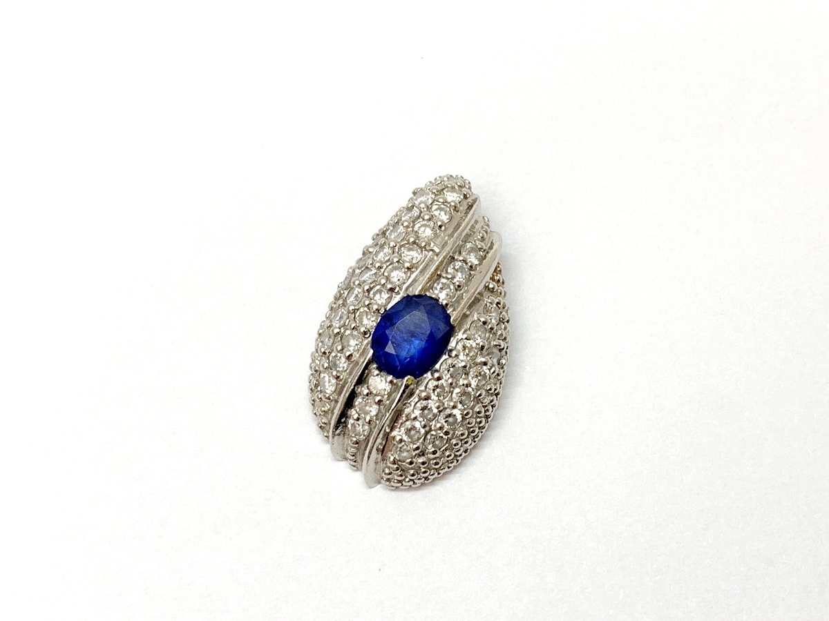- 【送料無料】Pt900 プラチナ ダイヤモンド ラウンド 0.50ct サファイア 青石 色石 宝石 0.54ct ペンダント トップ チャーム 店舗受取り可