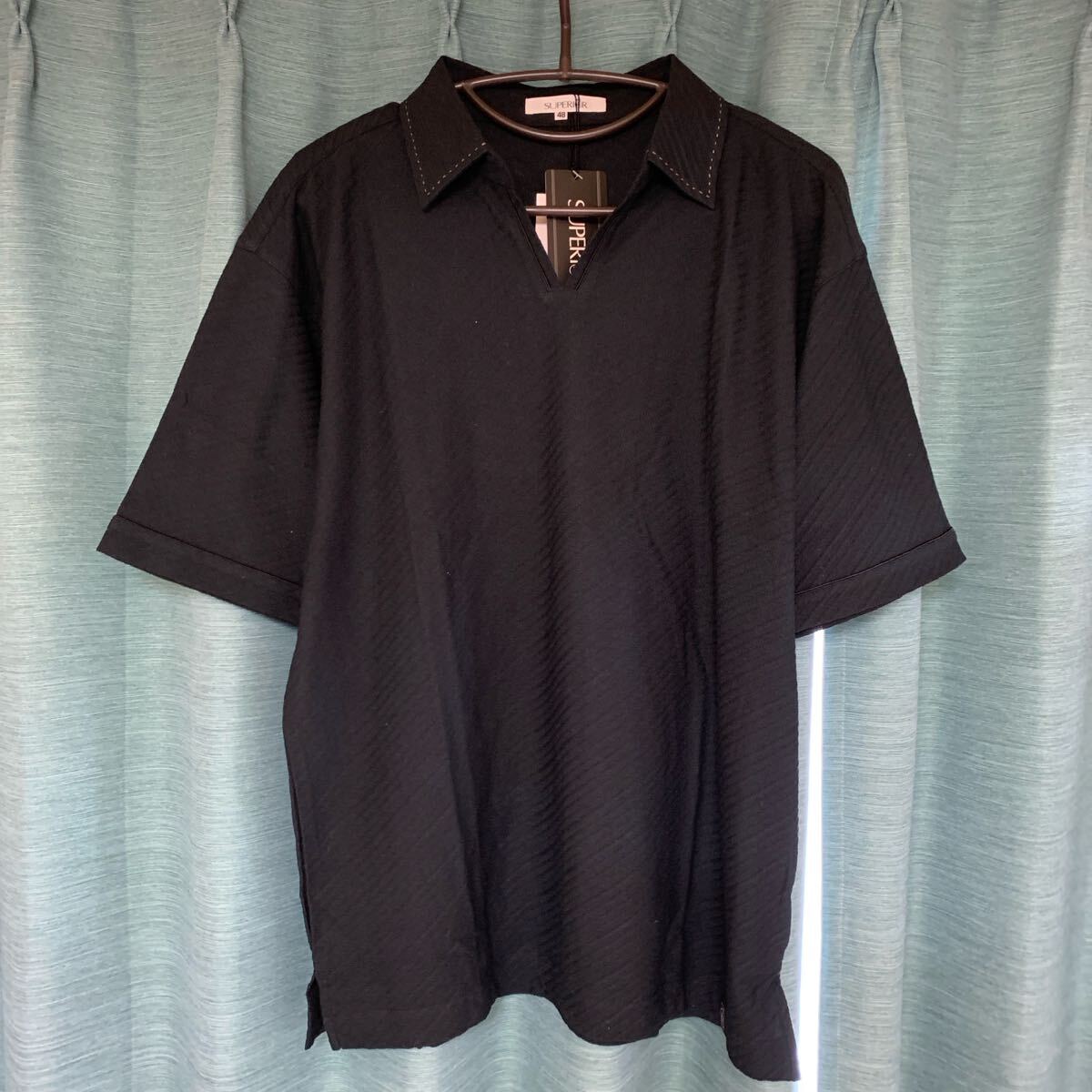 - メンズ SUPERIOR 半袖襟付き Vネックシャツ サイズL