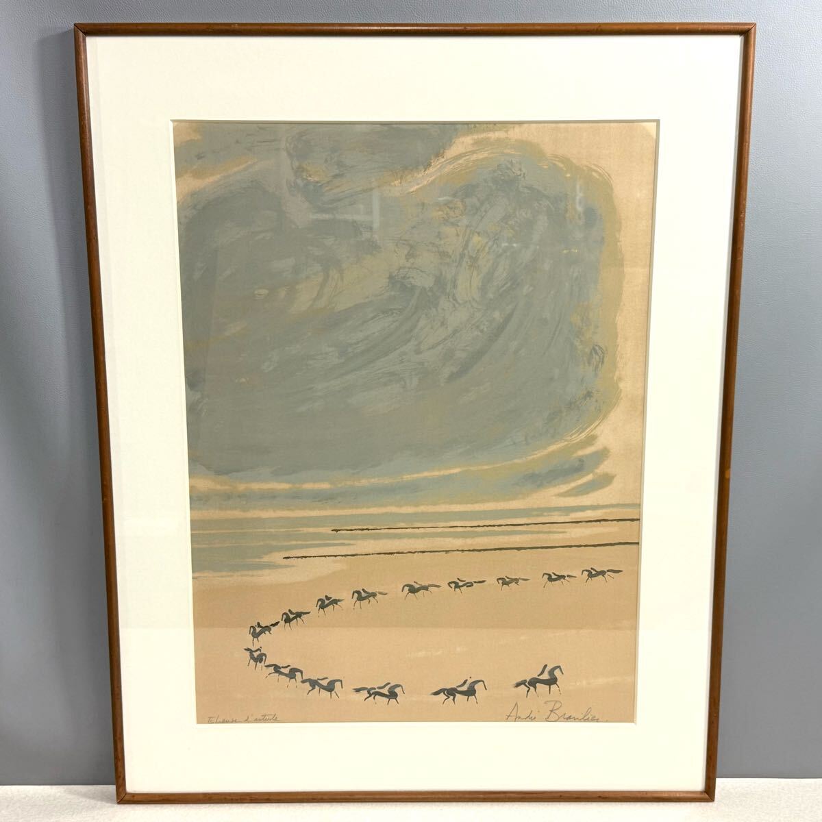 【真作保証】 Andre Brasilier アンドレ・ブラジリエ リトグラフ 『フランドルク海岸』 約15号 直筆サイン 額装 です。