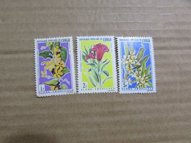 - ⑩ 植物・草花 コンゴ 熱帯の花 3種完 1971-03-25
