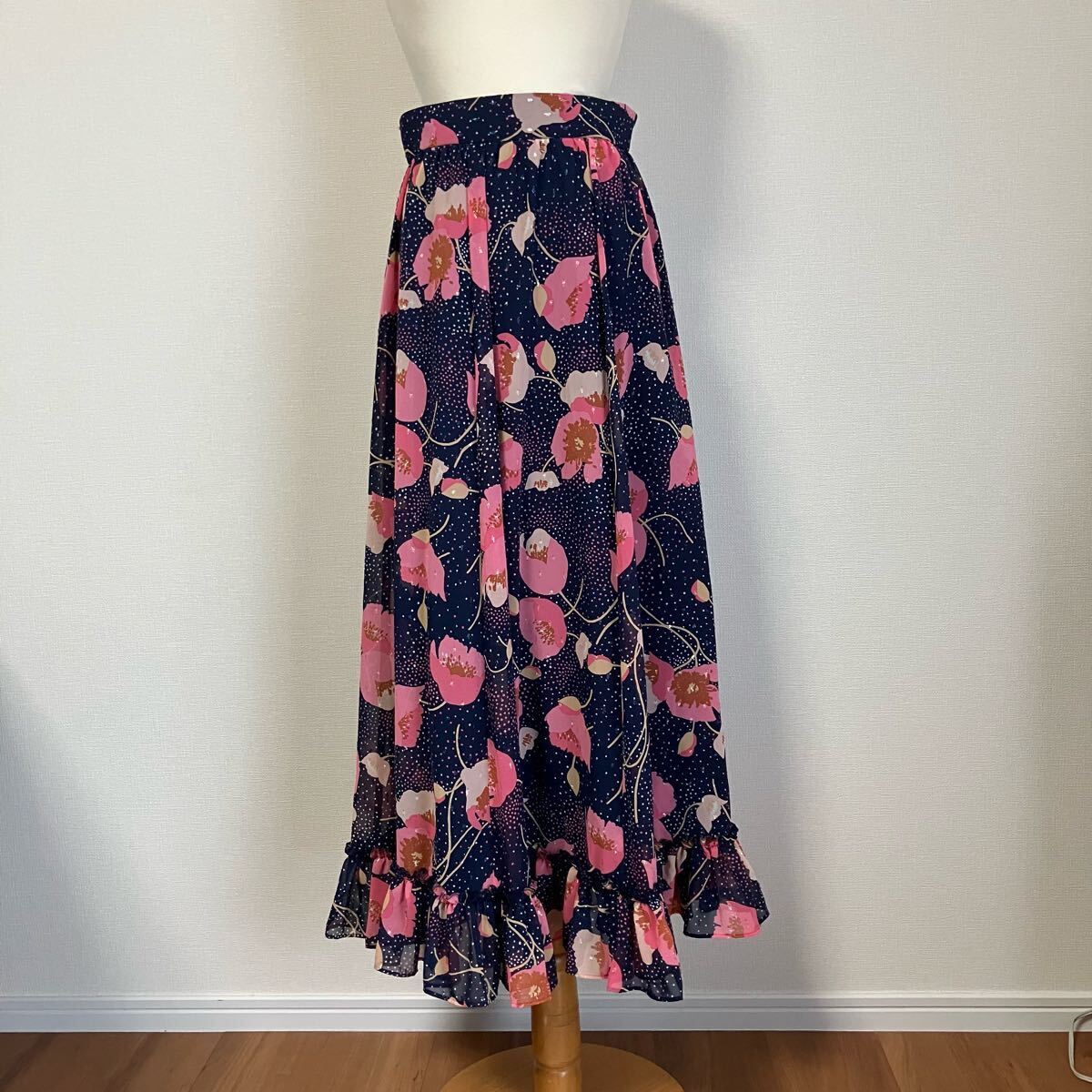 - ESTNATION 花柄 ラメ ロングスカート
