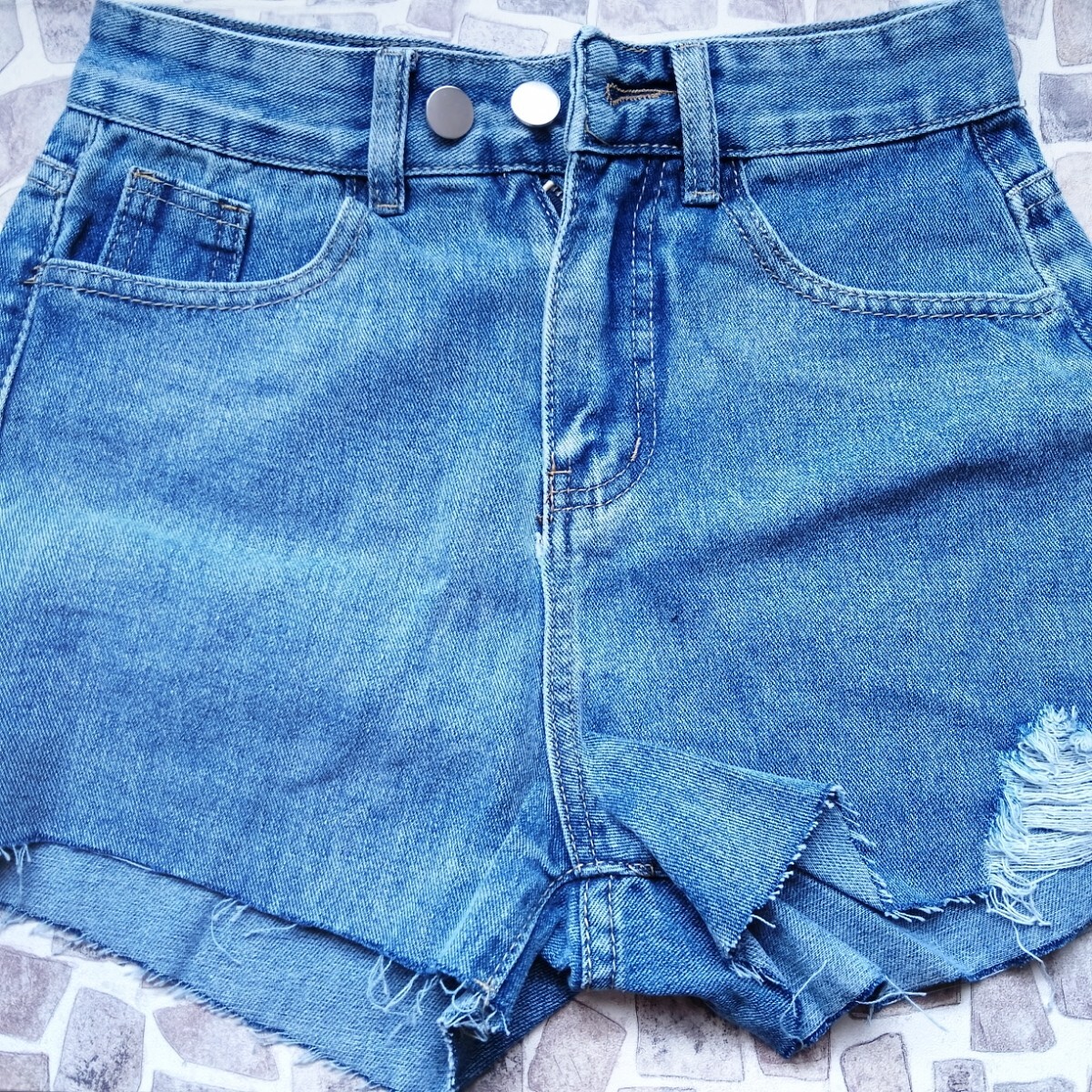 - 【10円スタート】デニム ショート パンツ ダメージデニム 明るめ カジュアル 定番 シンプル 切っぱなし ほつれ感