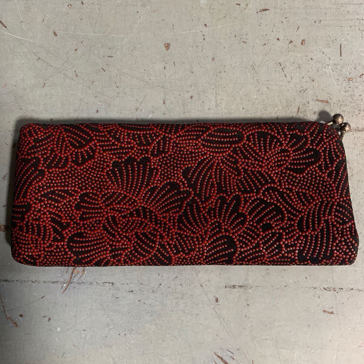 - メガネケース ペンケース 黒地 赤漆 印傳屋 甲州印伝 花柄 (A-1802)